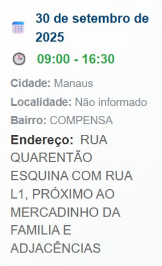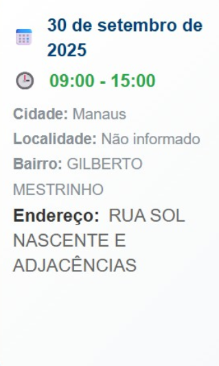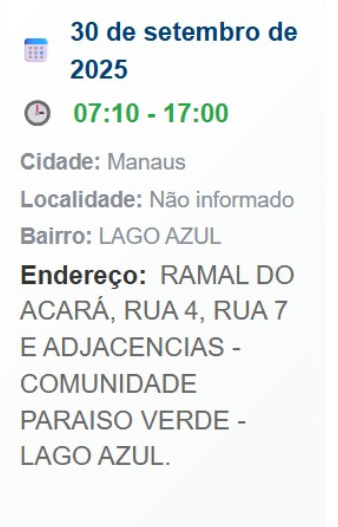 A concessionária Amazonas Energia informa que realizará serviços de manutenção e melhoria na rede elétrica em cinco bairros de Manaus nesta terça-feira, 30 de setembro de 2025. As interrupções são necessárias para garantir a segurança e a qualidade do fornecimento de energia.