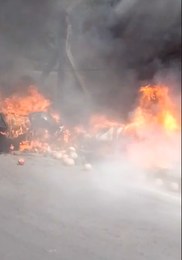 Acidente entre caminhonete e motocicleta causa incêndio e deixa uma vítima carbonizada na Av. Buriti em Manaus