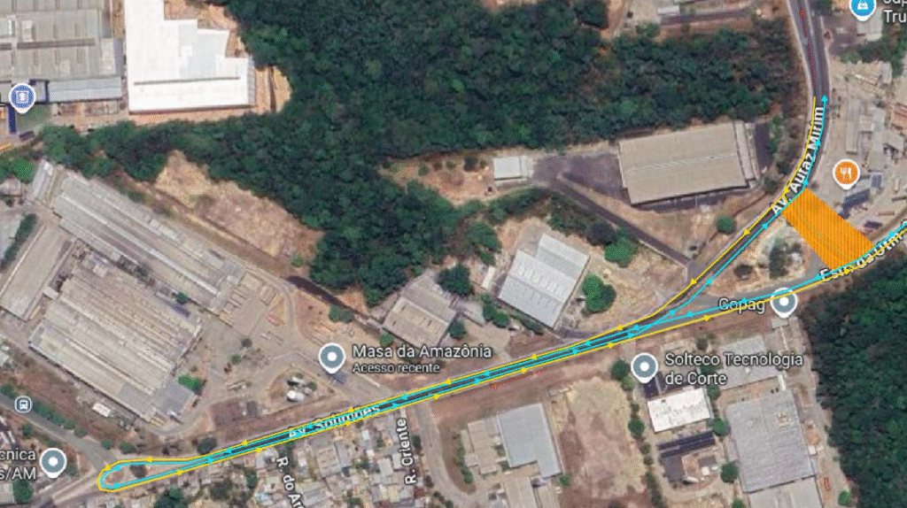 - Sentido Av. Autaz Mirim → Estrada da UTM-2: O condutor deverá seguir pela Av. Solimões, fazer o retorno na rotatória da Av. Cupiúba e então acessar a Estrada da UTM-2.