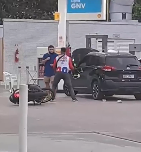 Segundo relatos que acompanham as imagens, o desentendimento teria começado na própria avenida, quando o condutor de um carro preto supostamente fechou a passagem do motociclista. A discussão verbal entre os dois continuou até que ambos pararam no posto de combustíveis.