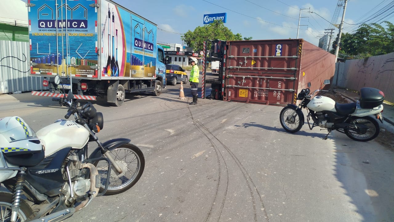 Carreta tomba na Av. Autaz Mirim na Zona Leste de Manaus