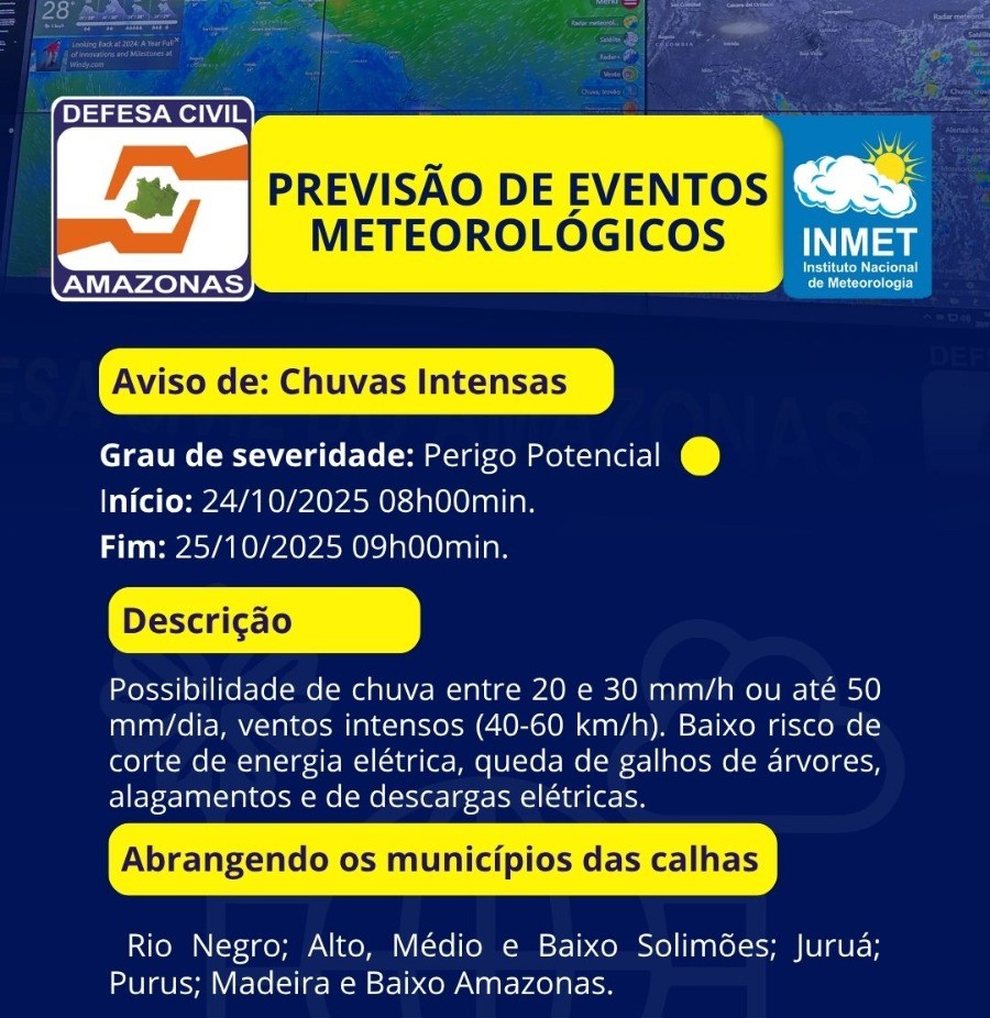 A Defesa Civil do Amazonas emitiu um alerta meteorológico de "Perigo Potencial" para Manaus e…