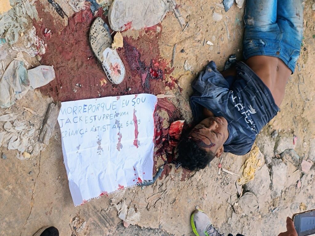 Ao lado do corpo da vítima, foi encontrado um bilhete com a seguinte mensagem macabra: “Morri porque eu sou JACK. Estuprei uma criança autista de 6 anos”.