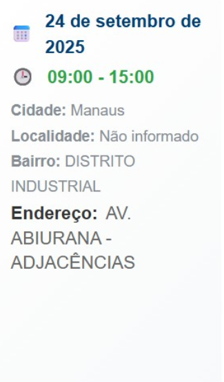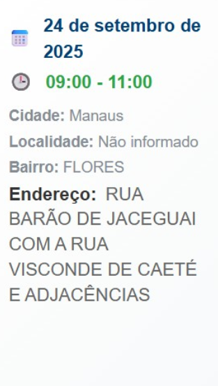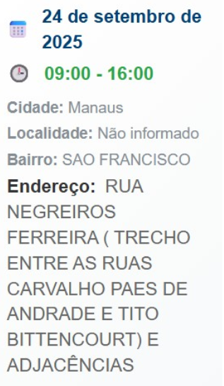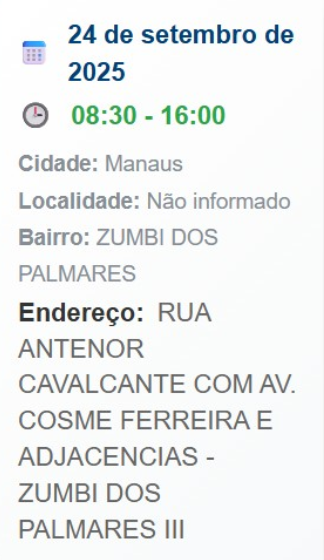 A concessionária de energia de Manaus programou uma manutenção que afetará o fornecimento de energia elétrica em sete bairros da cidade nesta quarta-feira (24). A medida é necessária para a realização de melhorias na rede de distribuição.