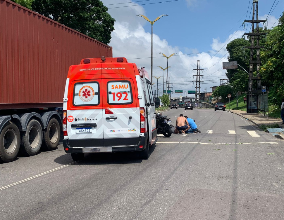 Uma mulher ficou ferida em um acidente de trânsito na manhã desta quinta-feira (23), na Avenida Rodrigo Otávio, próximo à rotatória do Coroado, na zona Leste de Manaus.