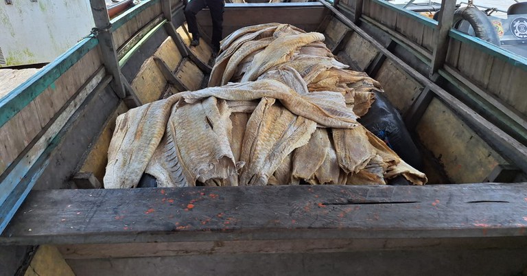 Durante a fiscalização fluvial, os policiais federais abordaram uma estrutura flutuante que estava ancorada nas proximidades do porto do município. Ao realizarem a inspeção no local, encontraram a grande quantidade do peixe armazenado, proveniente de pesca predatória e em desacordo com as normas ambientais.