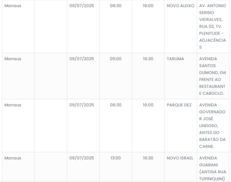 Quatro bairros de Manaus, localizados em diferentes zonas da cidade, enfrentarão interrupções programadas no fornecimento de energia elétrica nesta quarta-feira, 9 de julho. O desligamento, anunciado pela concessionária de energia, afetará ruas e avenidas específicas dentro dessas localidades.