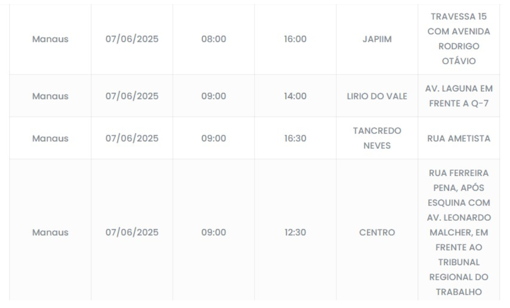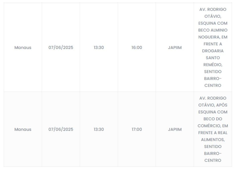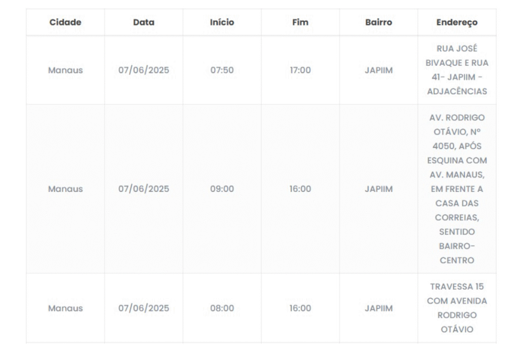Entre as localidades atingidas está o bairro Japiim, na Zona Sul, além de outras três áreas que terão o fornecimento interrompido temporariamente. A ação é necessária para a realização de serviços essenciais de melhorias na infraestrutura elétrica, conforme explicou a concessionária em nota.