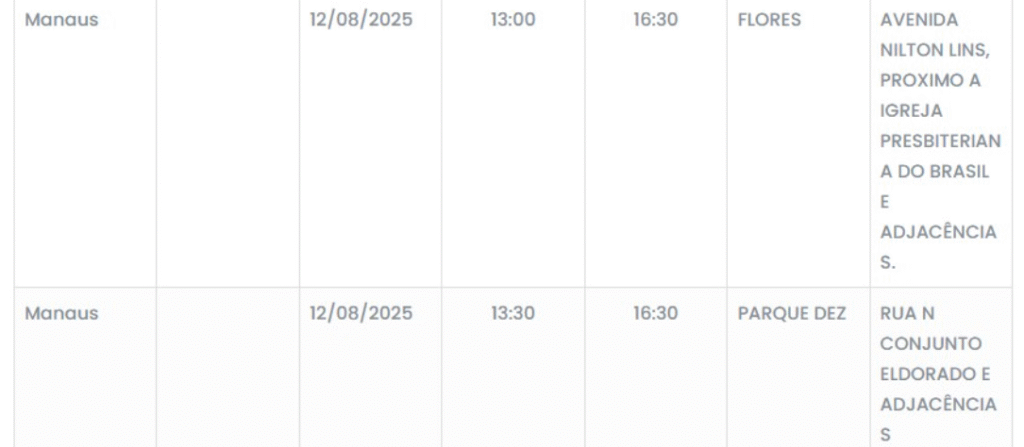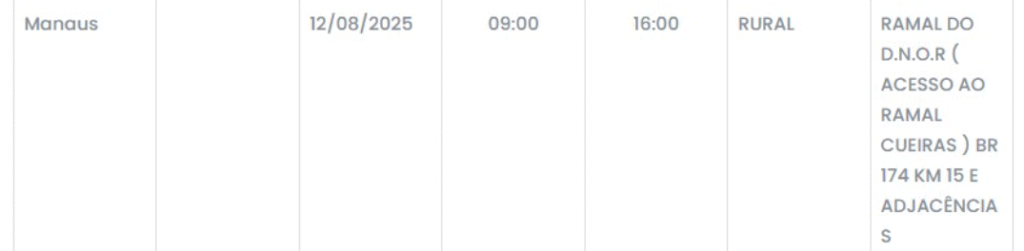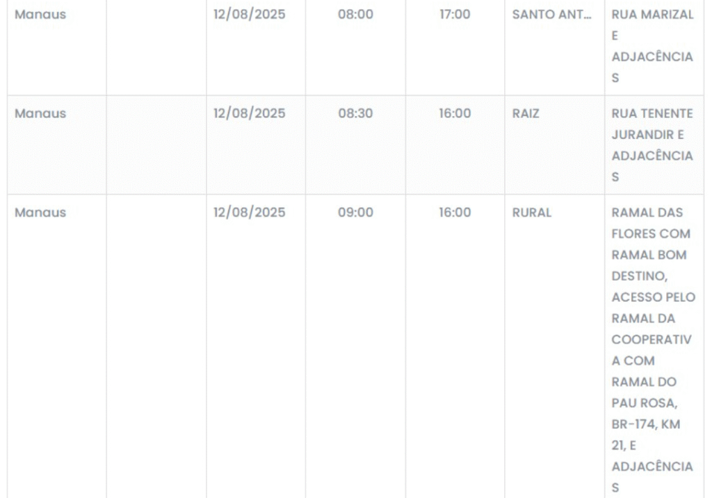 Sete Bairros de Manaus terão interrupção de energia para manutenção nesta terça-feira (12)