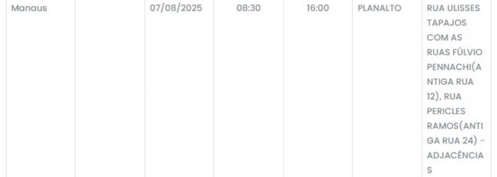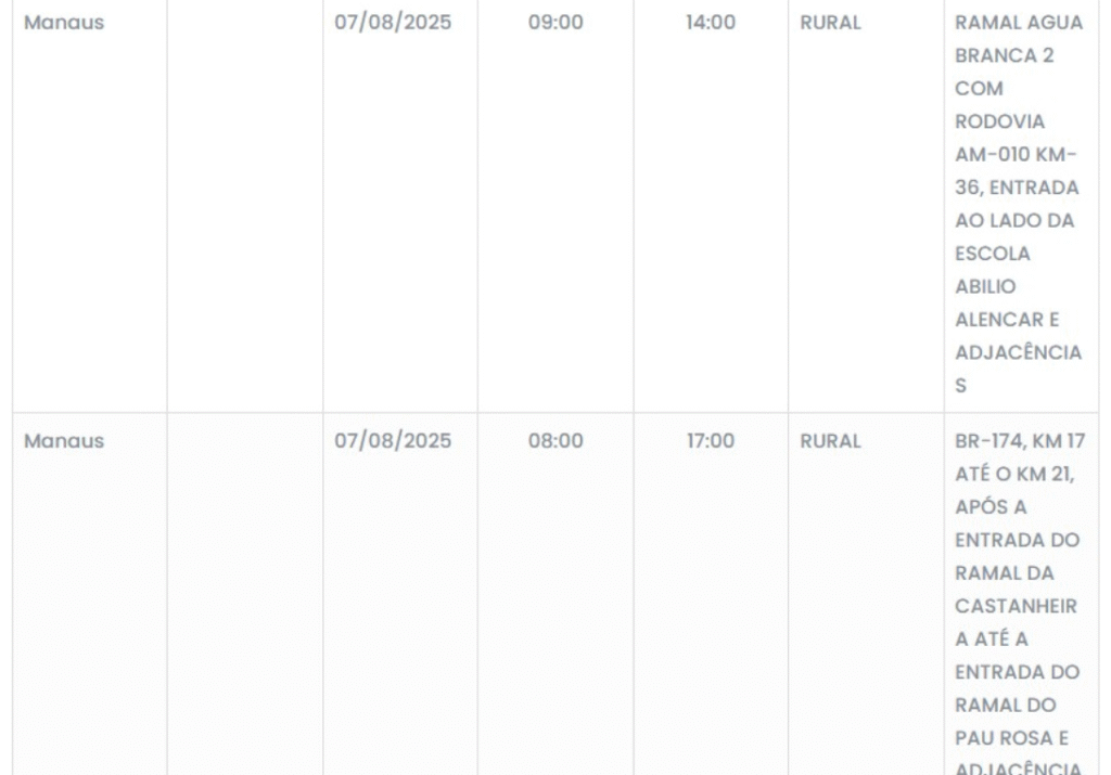 Três Bairros de Manaus ficarão sem energia nesta quinta-feira (7)