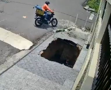 O momento exato da queda foi registrado por uma câmera de segurança. As imagens, que circulam nas redes sociais, mostram o pedestre caminhando quando a estrutura da calçada cede, fazendo com que ele desapareça na cratera. Logo em seguida, motociclistas que passavam pelo local pararam para prestar socorro.